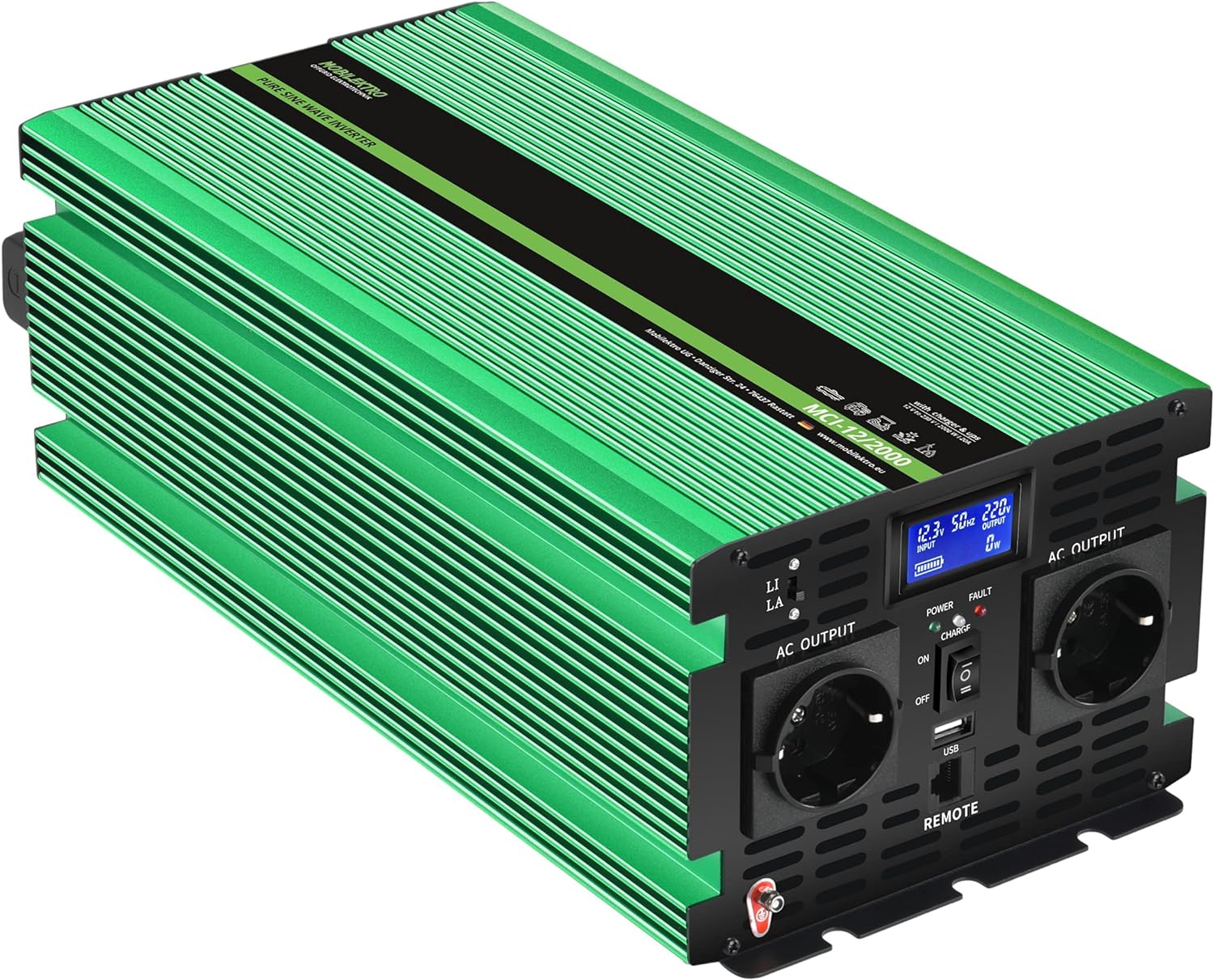 Der MOBILEKTRO MCI-12/2000 2000Watt reine Sinus-Wechselrichter wandelt 12V Gleichstrom Ihrer Batterie in 230V Wechselstrom um und liefert Strom wie Zuhause für unterwegs! Somit können Sie alle Ihre Haushaltsgeräte wie gewohnt in Ihrem Camper, Wohnwagen, Boot oder Schrebergarten benutzen. Z.B. Kaffeemaschinen, Laptops, Fernseher, Videospiele, DVD-Player, Handy-Ladegeräte und vieles mehr!