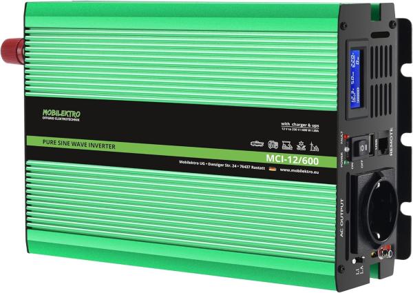Der MOBILEKTRO MCI-12/600 600Watt reine Sinus-Wechselrichter wandelt 12V Gleichstrom Ihrer Batterie in 230V Wechselstrom um und liefert Strom wie Zuhause für unterwegs! Somit können Sie alle Ihre Haushaltsgeräte wie gewohnt in Ihrem Camper, Wohnwagen, Boot oder Schrebergarten benutzen. Z.B. Kaffeemaschinen, Laptops, Fernseher, Videospiele, DVD-Player, Handy-Ladegeräte und vieles mehr!